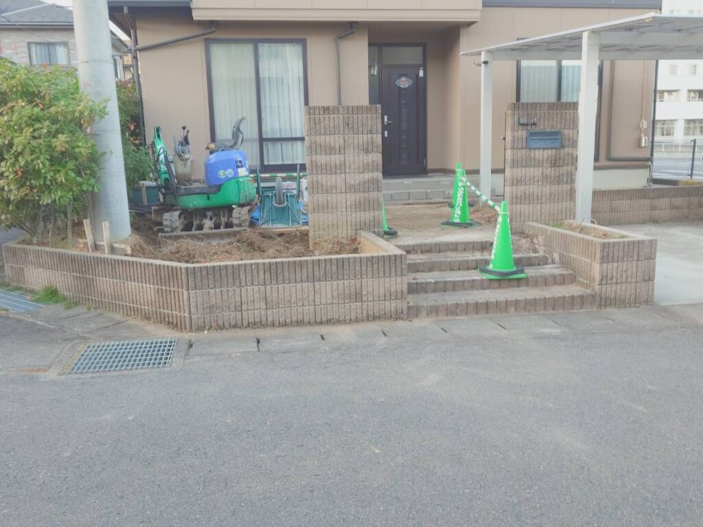 まずは計画している部分の庭木を処理し、ブロックなどを解体していきます。